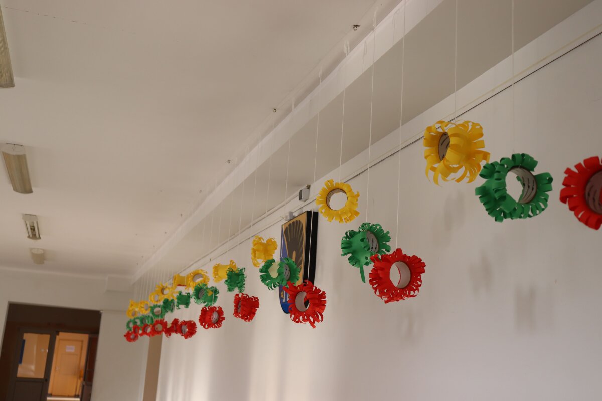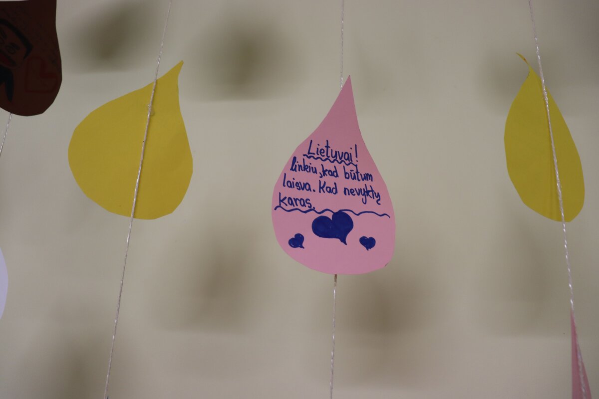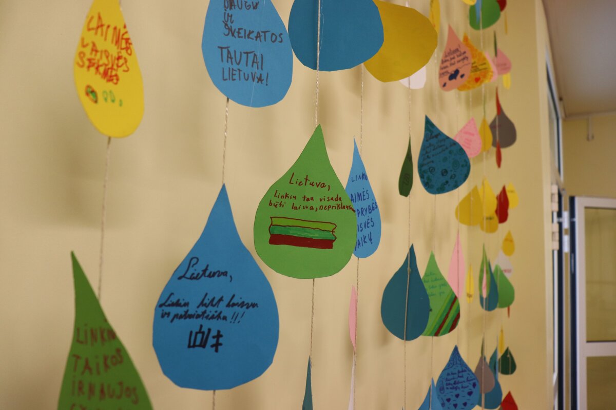 Be parodų gimnazijoje sukurta ir kūrybinė instaliacija ,,Aš linkiu Lietuvai“. Joje mokiniai galėjo